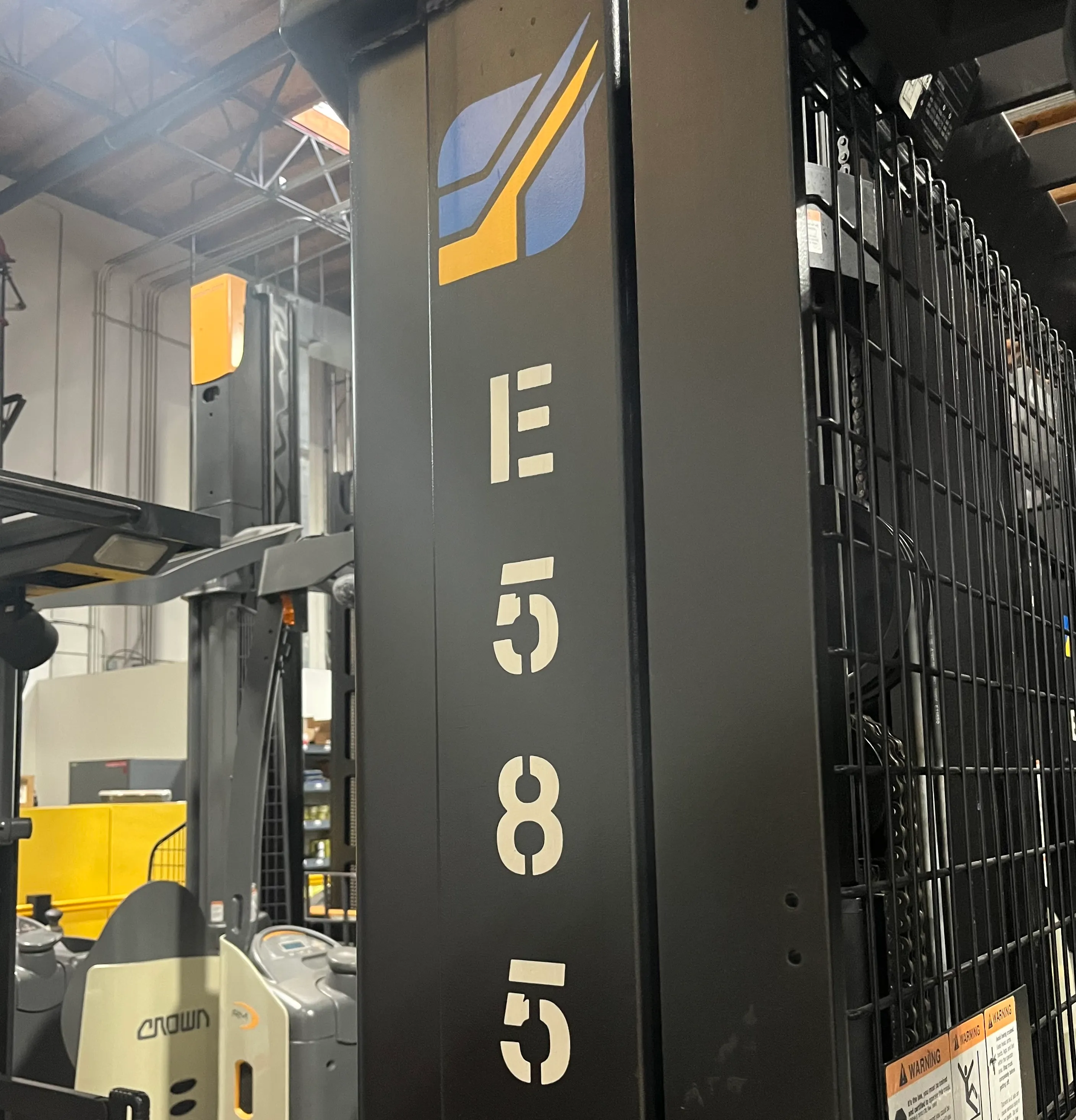 "E" numbers are painted on the side of the forklift (on the mast), right below our painted logo. "E" numbers consist of the letter "E" and three numbers, for example: E585.